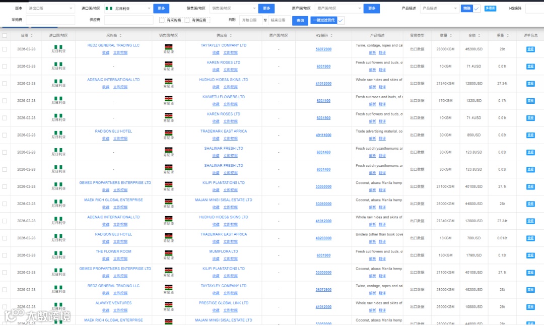 尼日利亚是开放海关数据的,用海关数据开发也是非常不错的选择,我们搜索的话可以用产品关键词、hs编码以及公司名字查询都是可以的。