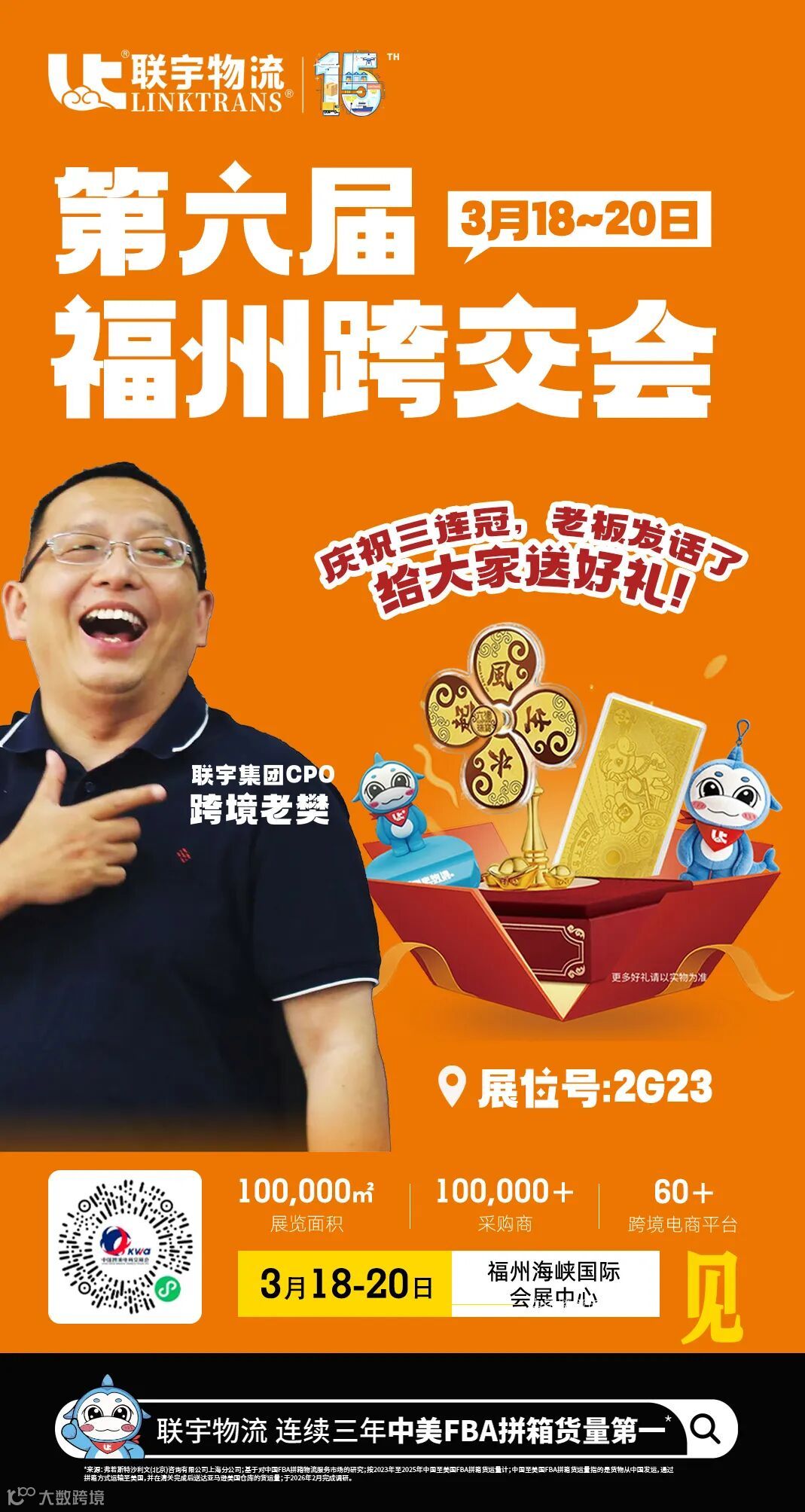 第六届福州跨境电商交易会(3月18—20日)将在福州举行,展览面积达10万平方米,吸引超3000家供应链企业、60余家主流跨境平台(含亚马逊、沃尔玛、TikTok Shop等)参展,规模同比翻倍,聚焦内外贸一体化、数字贸易与品牌出海。