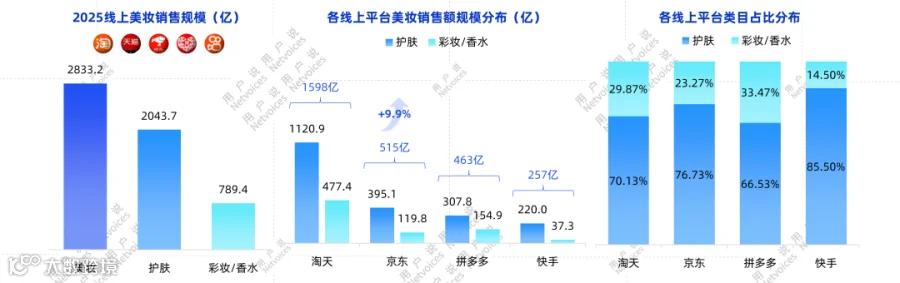 2025年淘天、京东、拼多多、快手美妆市场销售额达2833亿元