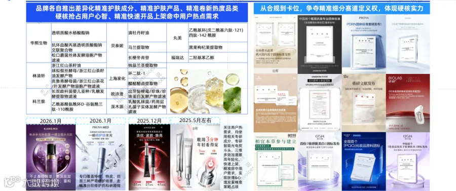 品牌依托对肌肤问题的科学洞察,以差异化成分为核心壁垒,推动行业从成分堆砌向分子结构、靶点机制等前沿科技维度升级;华熙生物、贝泰妮等企业正引领这一转型。