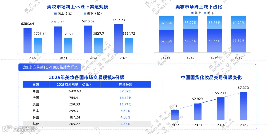 线上渠道持续成为核心增长引擎,2025年美妆线上交易额超7200亿元,占整体市场比重逾65%,已成为国货品牌崛起及消费者深度互动的主阵地。