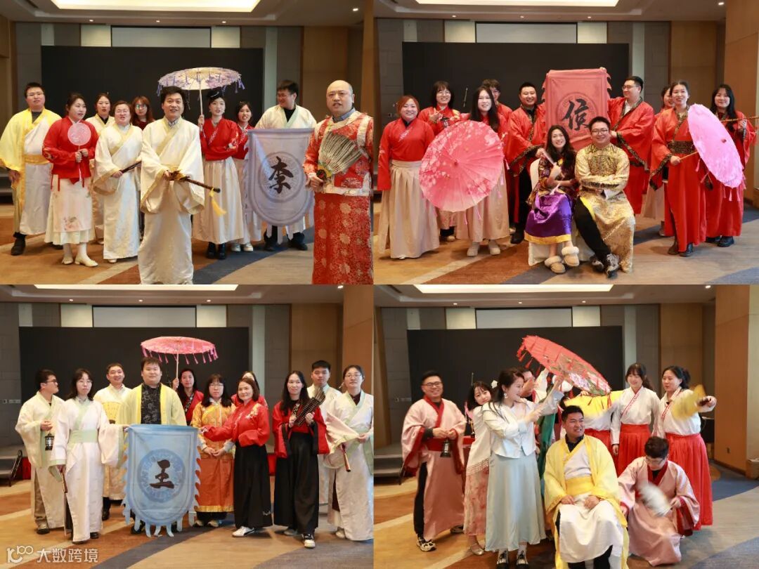 2026年3月13日,互旦科技举办「民国风云」主题年会。全员身着长衫、旗袍、西装、马褂等民国风格服饰,化身时代人物;以沉浸式剧本杀开启全程——穿梭现场、搜集线索、协作推理、锁定真凶,在剧情演绎中重温团队默契与奋斗历程。