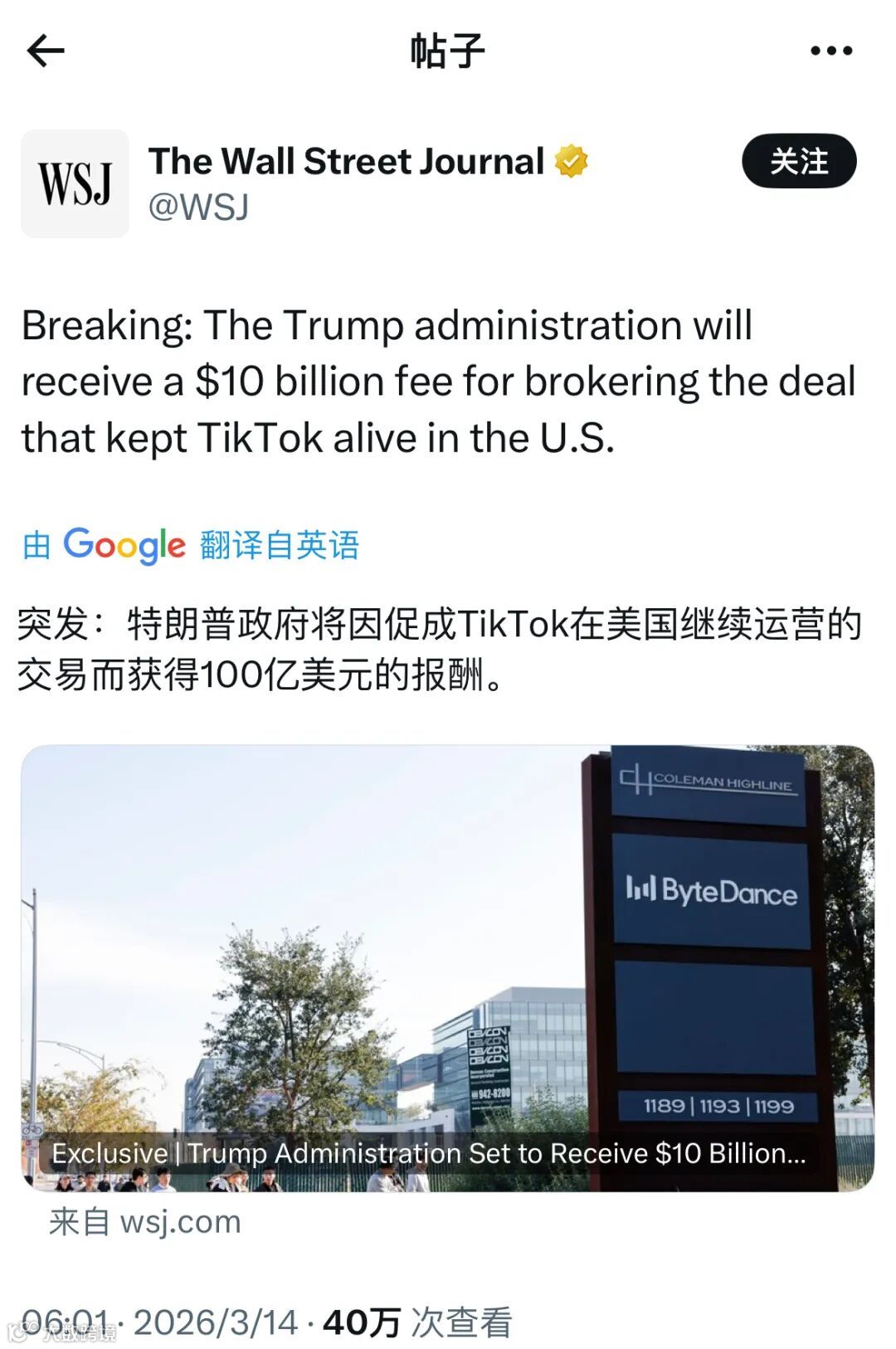 在TikTok美国业务剥离交易中,特朗普政府计划从投资者手中收取100亿美元费用(约合691亿元人民币),而TikTok美国公司的估值仅为140亿美元。