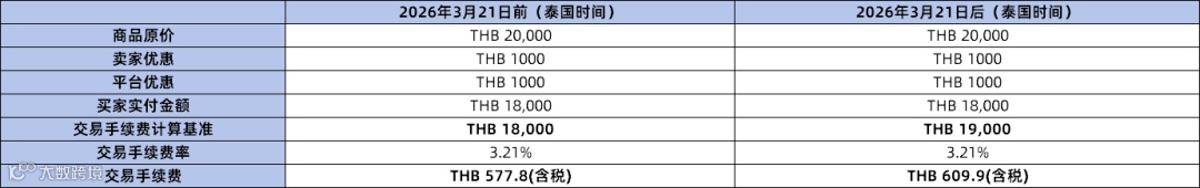 自3月21日起,TikTok Shop泰国站手续费计算方式由“(买家实付金额 − 退款金额)× 3.21%”调整为“(买家实付金额 + 平台补贴金额)× 3.21%”。即平台发放的优惠券补贴亦计入手续费基数,对依赖补贴冲量的商家利润模型构成影响。