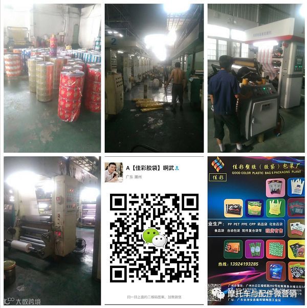潮州佳彩胶袋包装厂专业生产多层复合包装袋,适用于化妆品、食品、海产品、药品、礼品、电子、摩托车配件等。电话:020-81293325,传真:020-81293326,联系人:余先生,手机/微信:13924193285。