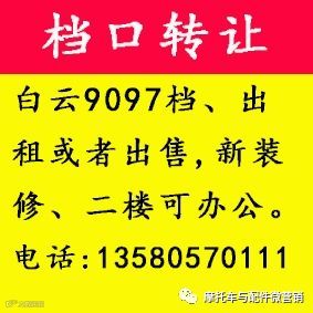 白云9097档位出租或出售,新装修,二楼可办公。联系电话:13580570111。