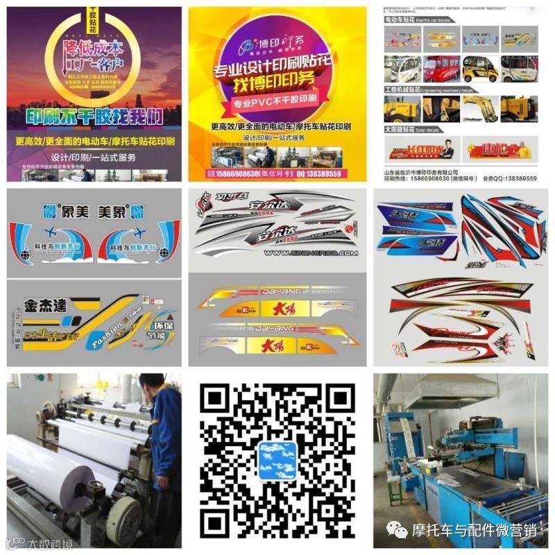 临沂市博印印务有限公司专业生产摩托车、电动车、工程机械高中低档不干胶贴花,支持来图定制,免费设计。联系人:公先生,电话:15866908630(微信同号),QQ:138389559。