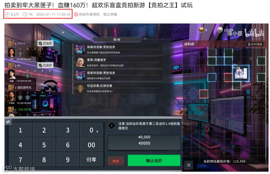 规则核心很直白:几位玩家在五个回合内,面对装着未知物品的盲盒,需要根据每回合陆续透露的线索,并结合自己独特的角色技能,去估算价值、参与竞拍,目标是力争以最小代价拍得最大收益。