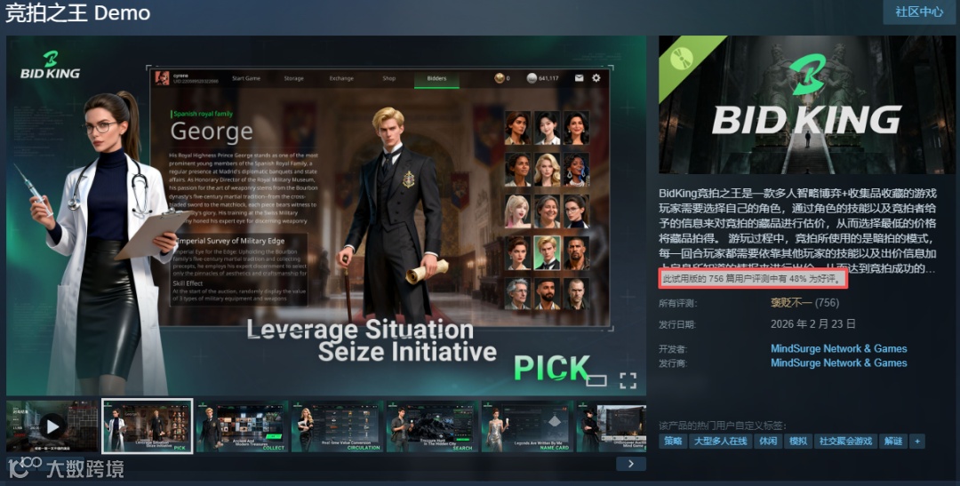 新品节的热潮已褪去一周,但笔者注意到《竞拍之王》这款国产游戏Demo却呈现出意外的增长趋势。