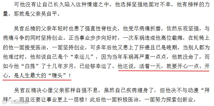 吴官丘楠:就是15年左右为了治这个病花了不少时间也不少钱,导致当时已经不怎么能接触到工作的内容了。