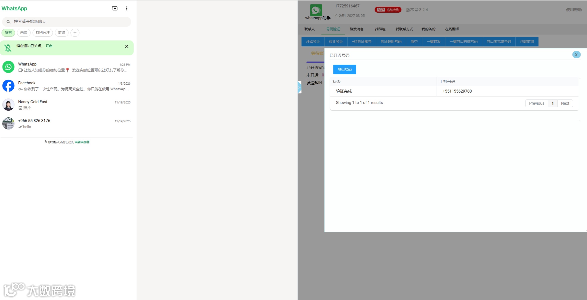 - 验证WhatsApp:巴西大部分手机号码同时也是WhatsApp账号,可以将号码保持导入WhatsApp助手进行验证。