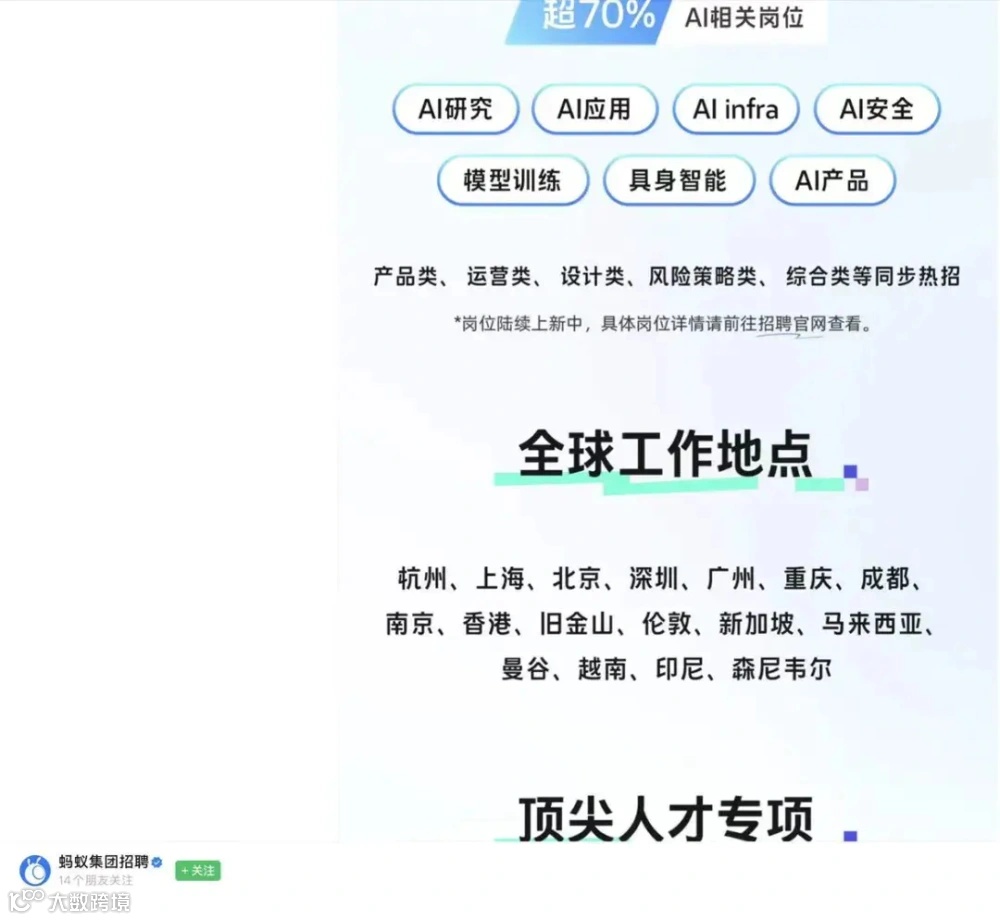 量同比暴涨12倍,平均月薪60738元;字节跳动实习生招聘中AI工程与产品类岗位超4800个;蚂蚁集团春招技术岗85%为技术类,其中70%直接关联AI研发,聚焦大模型算法、多模态生成、AI安全等核心方向。