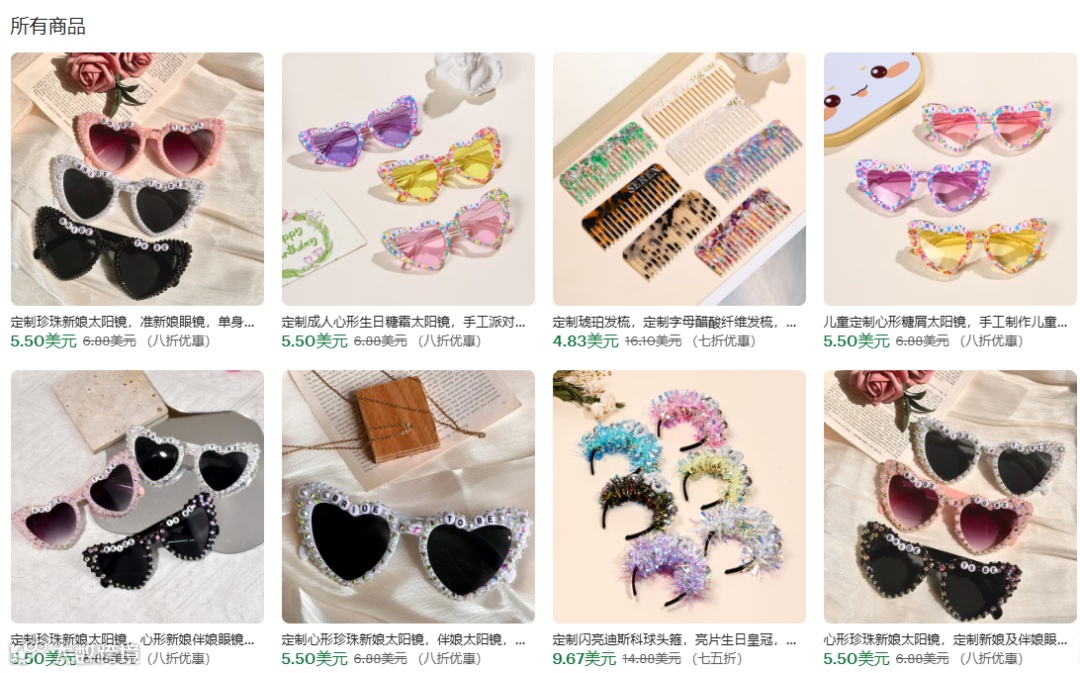 产品深度绑定婚礼、生日等高频场景,如新娘太阳镜、伴娘礼物、生日皇冠等,场景化定位显著提升买家决策意愿与复购可能。