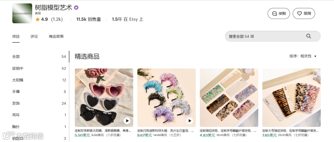 Etsy明确定义为“手工、原创、复古”平台,禁止工业批量生产产品,天然过滤低价内卷卖家。该店铺主打手工定制树脂饰品,无需与量产塑料饰品比价,凭借“独一无二”的定制价值实现更高溢价。