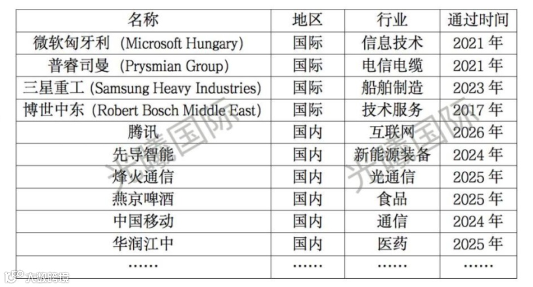 对比可以发现,国际企业的认证时间大幅度早于国内,尤其是欧洲企业早在2017年就开始进行认证,这大概率源于欧盟对于标准的推行与其严格的监管要求。