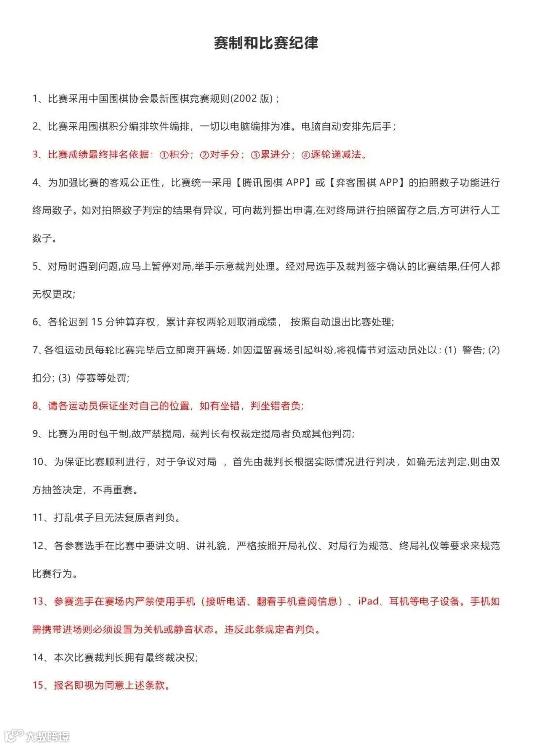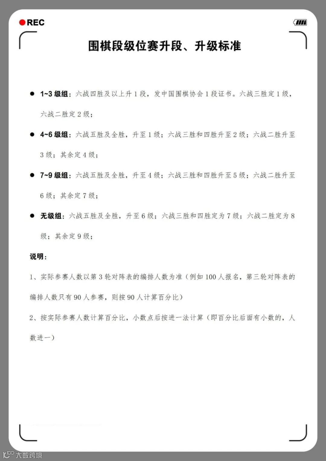 4、选手注册时所提供的段位证书须为中国围棋协会监制的业余段级位证书。特殊情况需说明原因报主办单位批准。
