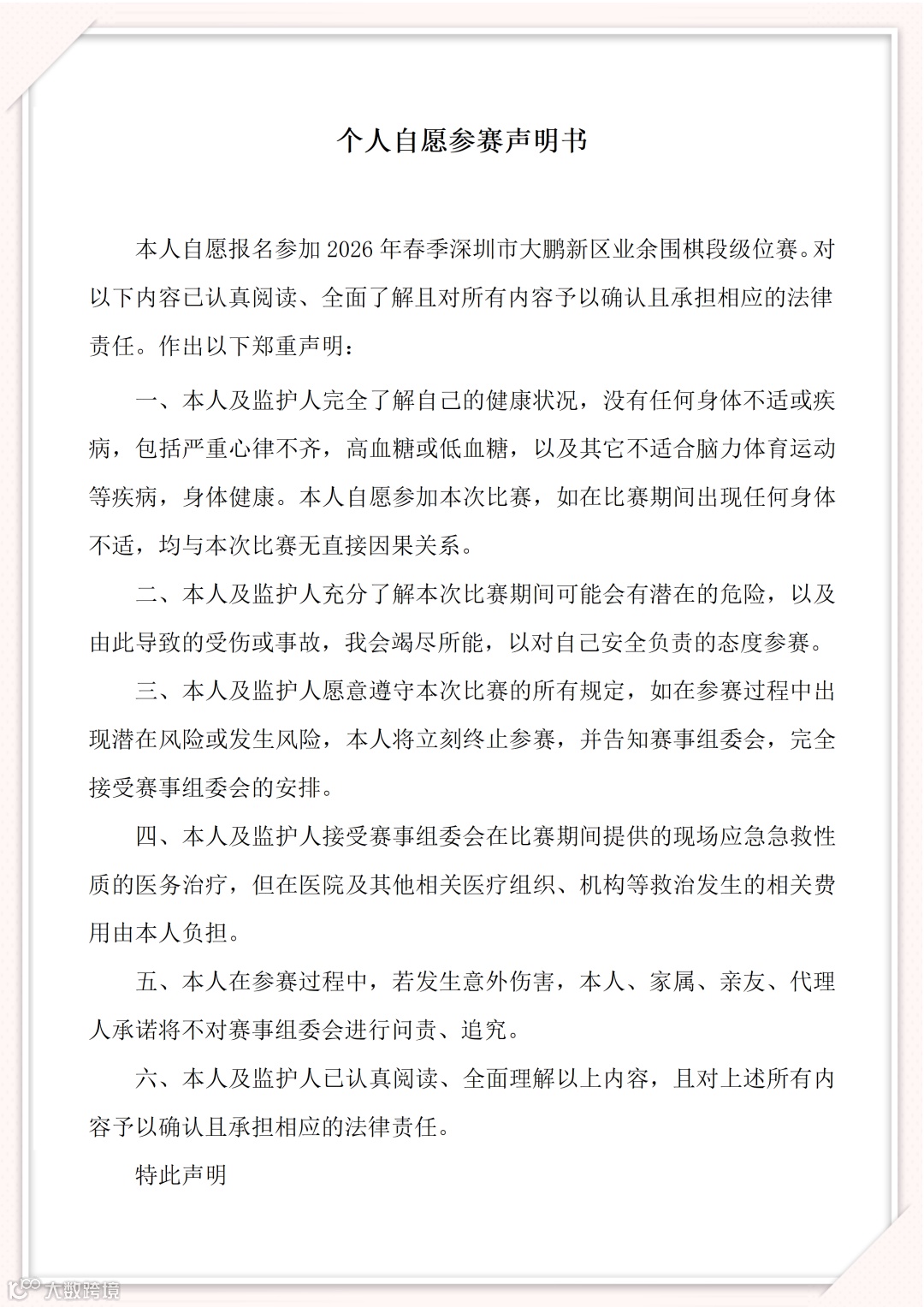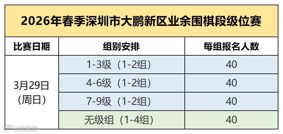 2026年春季深圳市大鹏新区业余围棋段级位赛组委会