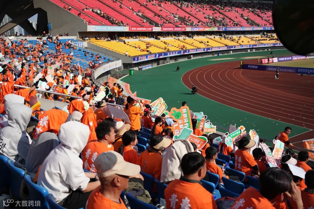 内场看台上已被金东球迷的橙色覆盖,青春金东的旗帜在看台上挥舞,球迷的呐喊声和擂鼓的助威声交织在一起。