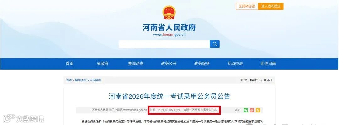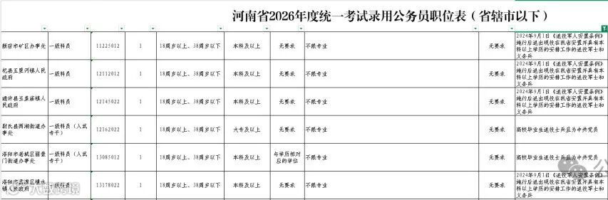 (信息仅供参考,请以河南官方公告及招考单位解释为准https://www.henan.gov.cn/2026/01-05/3281668.html)