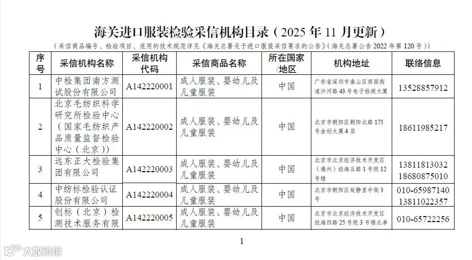 《关于进口服装检验采信要求的公告》(海关总署公告2022年第120号公布,自2022年12月1日起施行,根据海关总署公告2025年第181号修改)