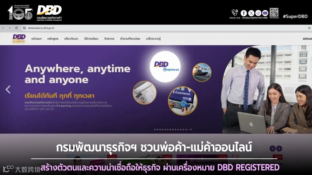在数字化浪潮推动下,电子商务已成为泰国经济增长的重要引擎。但线上交易的虚拟性也导致消费者对商家信誉和产品质量存在顾虑。为此,泰国商业发展部(DBD)近期大力推广DBD注册商标,旨在强化线上企业品牌公信力,提升消费者购物信心。
