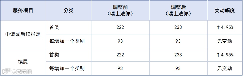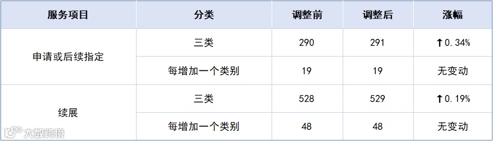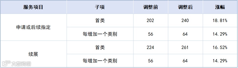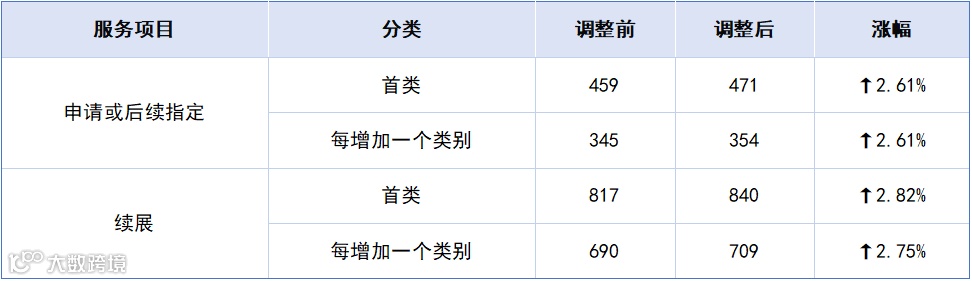 上调类目集中在集体商标及续展相关,具体调整幅度见下表:
