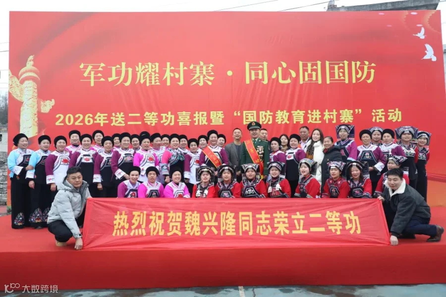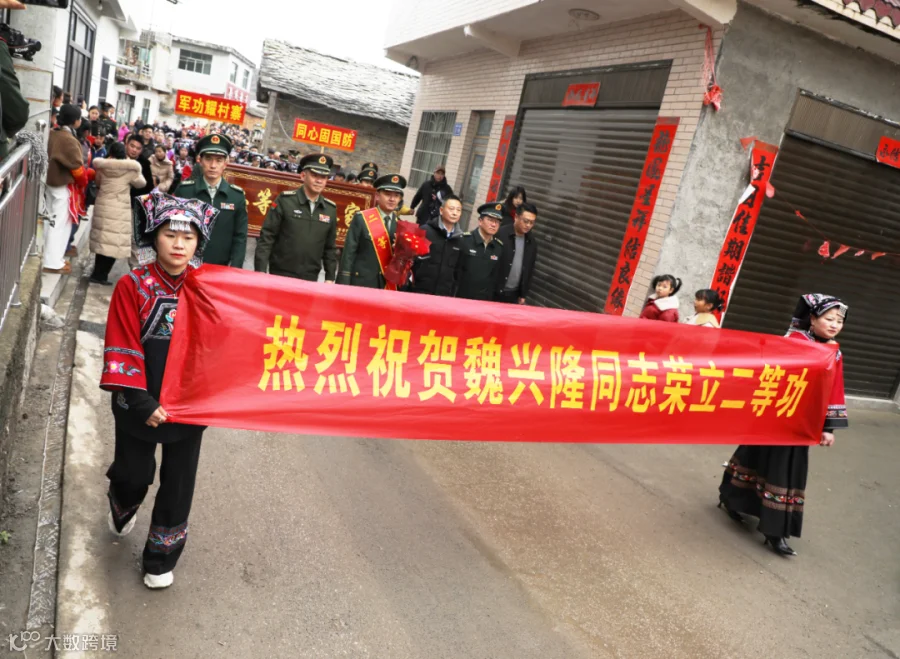 近日,贵安新区马场镇鱼雅村锣鼓喧天、气氛热烈。一场以“军功耀村寨·同心固国防”为主题的送二等功喜报暨“国防教育进村寨”活动在此举行,伴随着乡亲们热烈的掌声,荣立二等功的现役军人魏兴隆及其亲属身披“一人立功、全家光荣”的鲜红绶带,在军地领导和全村乡亲的共同见证下,荣受喜报。