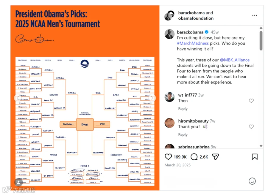 图为奥巴马在2025年发布在Instagram账号上的预测表