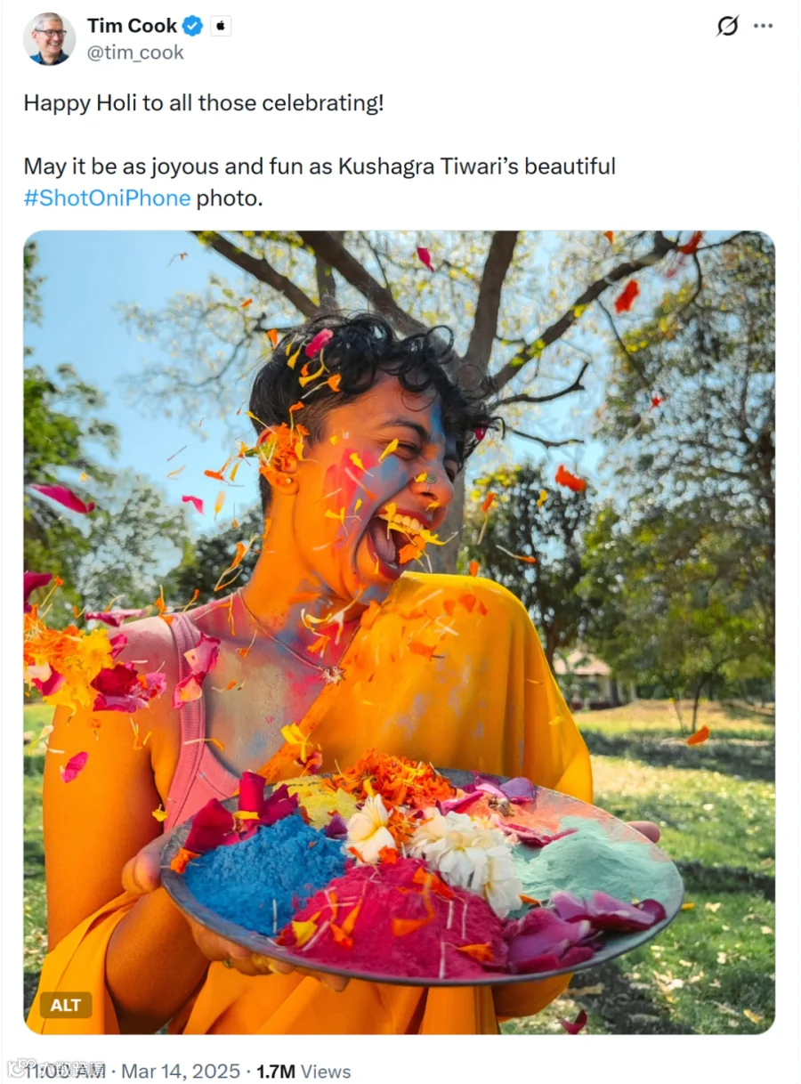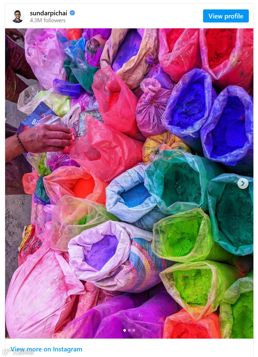 苹果和谷歌的CEO在社媒上发帖祝大家洒红节快乐