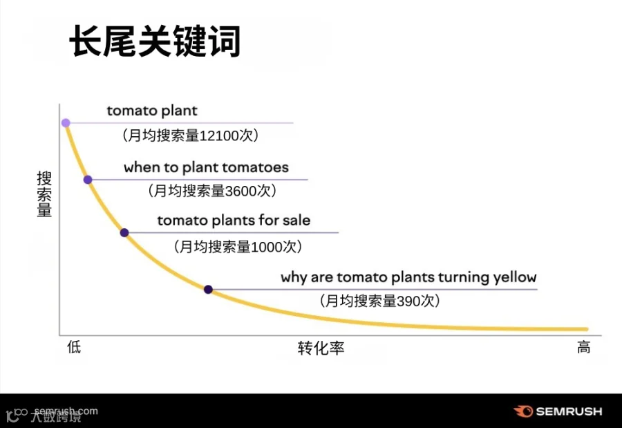 2️⃣忽视长尾关键词。这类词的搜索量虽低,但用户意图更明确。实际上有34.71%的Google搜索查询包含四个或以上的单词,长尾查询通常更接近真实购买需求。