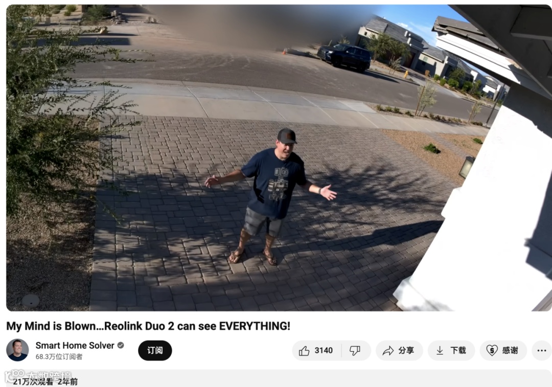 此次合作视频一经发布便取得了令人瞩目的传播效果:播放量迅速突破21万次,点赞数超过3140次,互动数据表明观众对内容的高度认可。这不仅反映了Smart Home Solver频道本身所拥有的强大影响力,也说明Reolink通过与垂直领域的本地化KOL深度合作,能够高效触达目标用户群体,形成良好的口碑效应。