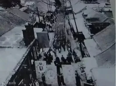 1945 年邢台北大街街景:照片展现了1945年邢台北大街的景象,街道行人众多,两侧为低矮建筑,充满历史沧桑感。
