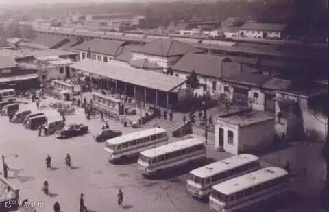1970 年代的邢台火车站:当时称“顺德府站”,新中国成立后更名为“邢台站”。照片展示了1970年代车站风貌,建筑古朴,站前广场人流较多。