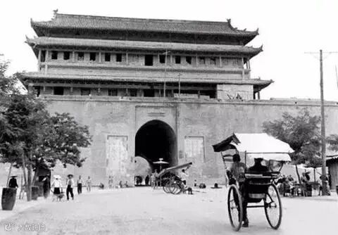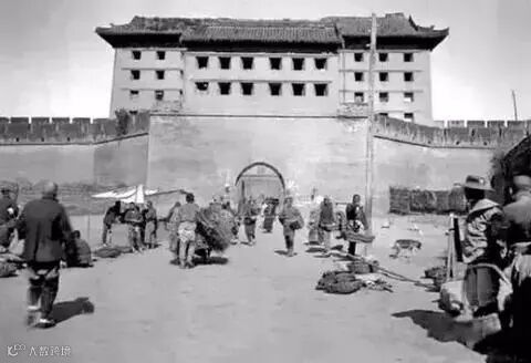 1941 年西安西门:拍摄于1941年,城门高大坚固,门洞上方有建筑结构,门前行人、马车往来,人力车夫候客,周边街景真实还原战时城市风貌,凸显西门作为交通要道的重要地位。