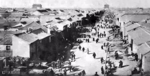 1937 年西安南大街:1937年的南大街人流密集,两侧店铺低矮,鼓楼与钟楼遥相呼应,街边商贩摆摊经营,展现出浓厚的历史氛围与商业繁荣。