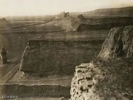 1937年大同附近万里长城遗址:长城蜿蜒于广袤土地之上,虽部分墙体损毁,但仍显雄伟气势,体现出古代边防工程的恢宏格局。