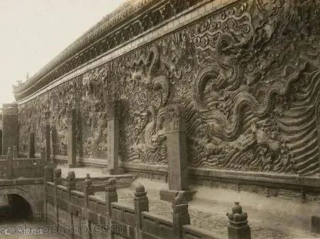1937年大同九龙壁:位于明太祖第十三子朱桂王府内,九龙壁雕刻精细,九条龙形态各异、栩栩如生,体现了古代高超的石雕艺术水平。