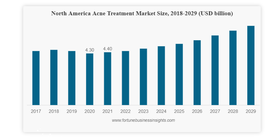 随着人们对美容愈发重视,选择治疗痤疮的患者数量正在迅速增加,各种各样的护肤概念也正在让患者打消病耻感,积极治疗痤疮,进而推动市场增长。美国痤疮治疗市场预计从2022年的45亿美元增长到2029年的61.2亿美元。可以轻松获得的非处方外用产品在市场份额中的占比越来越大——因为它们易于获得且使用起来方便舒适。