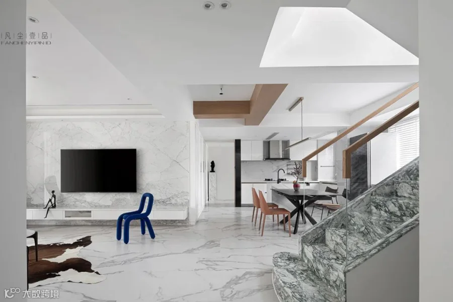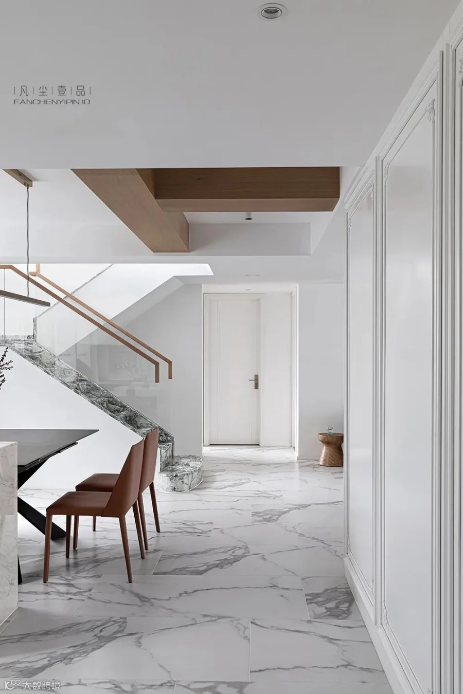 鱼肚白是近年来备受瞩目的高档白色大理石之一,凭借其洁白优雅的色泽和细腻柔和的灰色纹理,成为现代室内设计中的热门材料。其底面具有玉石般的温润质感,整体视觉效果高级且耐看,被誉为不可多得的优质天然石材。