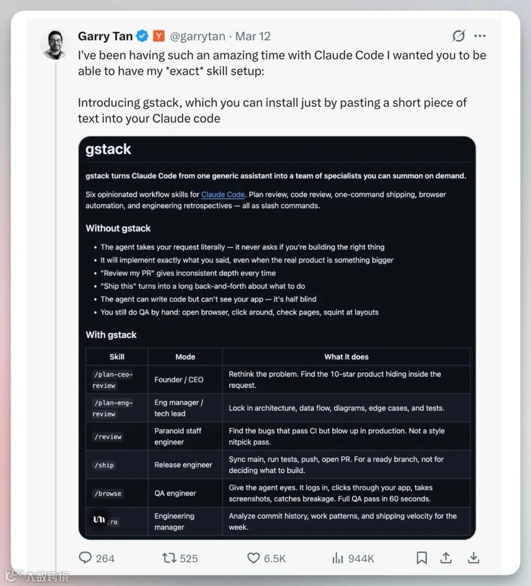 Garry Tan 的高产高质量,源于工具本身对标准的内化: