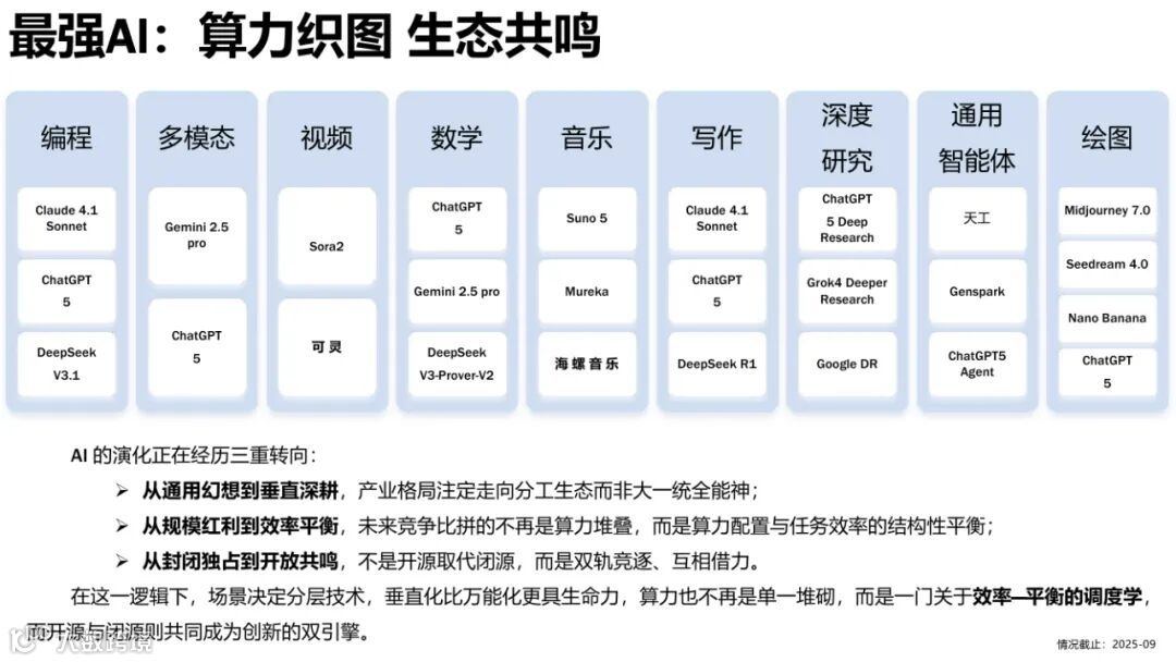 - 从通用幻想到垂直深耕:产业格局将走向分工协作生态,而非全能型单一大模型