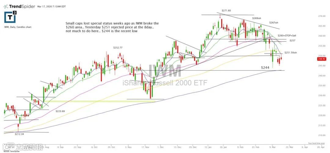小盘股自跌破260区域后已丧失相对强势地位。昨日在8日均线(约251)遇阻回落,短期缺乏明确交易空间。244为近期低点参考位。