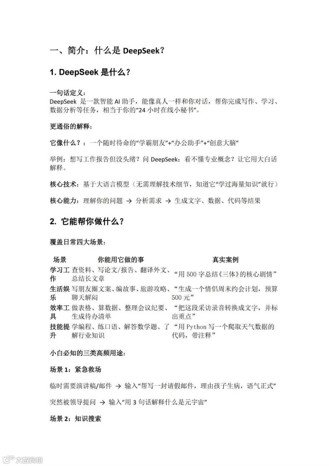 本篇为AI工具DeepSeek的基础使用指南,涵盖下载安装、网页访问、基础操作及典型应用场景,帮助零基础用户快速上手。后续将更新深度技巧与高频问题解析模块。