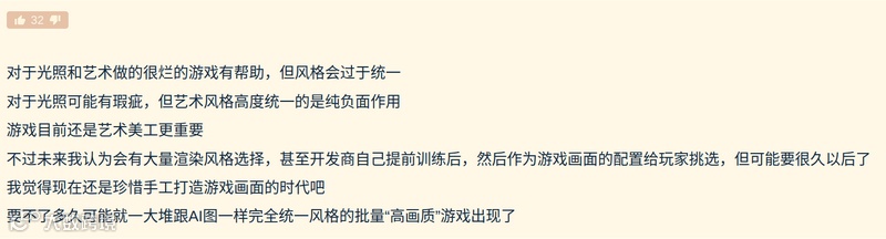 更进一步来看,这种争议也反映出一个更宏观的趋势:随着生成式AI技术的发展,图形渲染正在从“确定性计算”逐步转向“概率性生成”。在这一过程中,画面不再完全由开发者定义,而是由算法在一定范围内进行“再创作”。