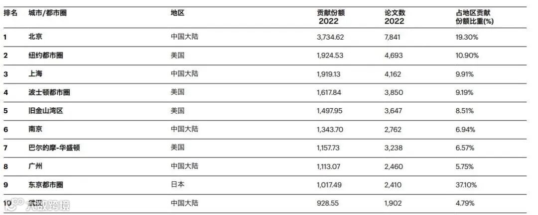 2023自然指数全球10大科研城市。