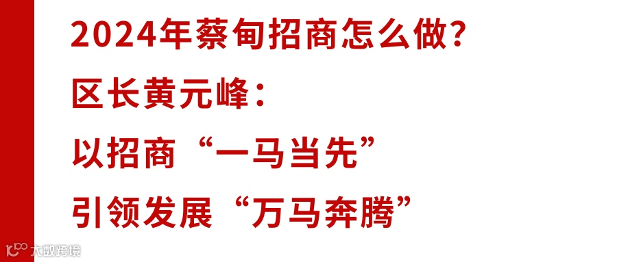 2024年蔡甸招商怎么做,区人民政府区长黄元峰说,蔡甸将不断深化对外开放、推动绿色崛起,持续推动招商引资大比拼,全力以赴大招商、招大商、招好商,以招商“一马当先”引领发展“万马奔腾”。