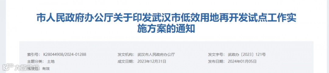 武汉市人民政府办公厅关于印发武汉市低效用地再开发试点工作实施方案的通知