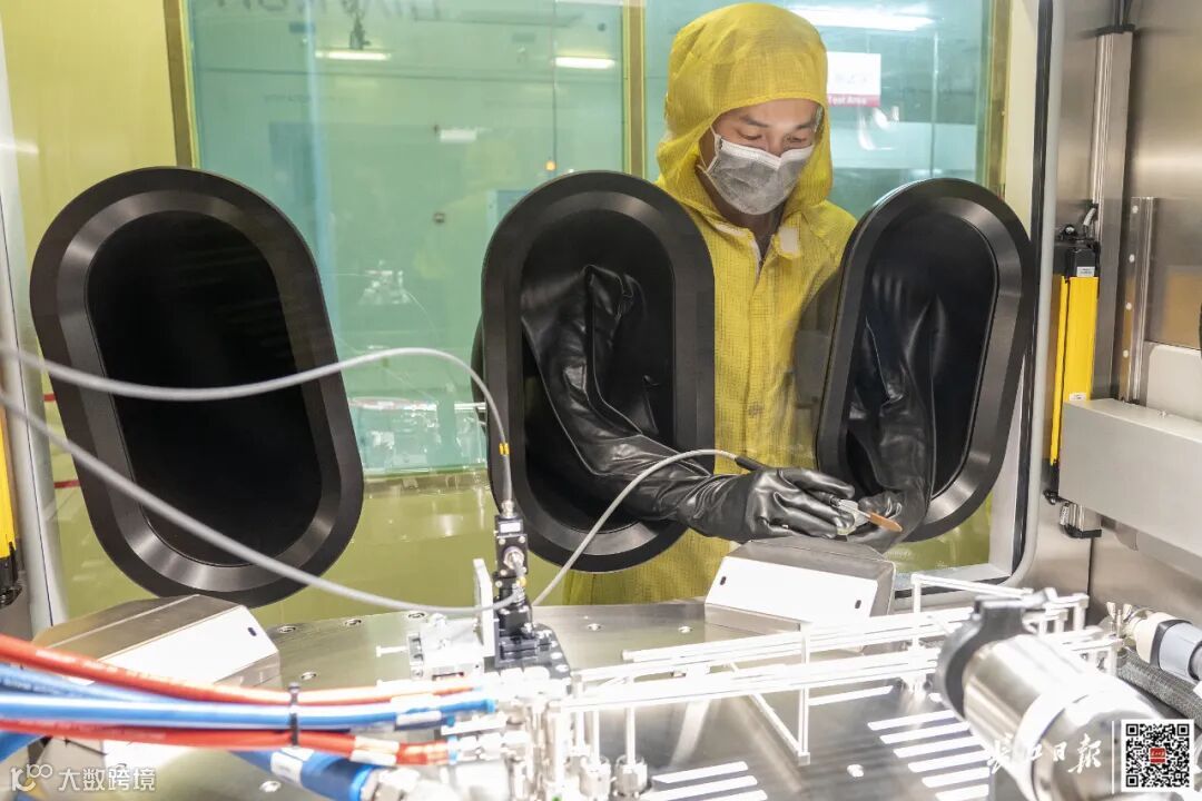 云岭光电技术人员在生产芯片晶圆。