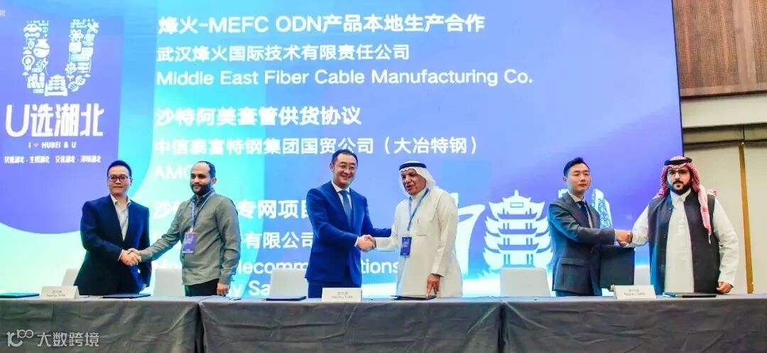 来自湖北的40余家企业和沙特的100余家企业参加对接会,烽火ODN产品本地生产合作等7个重点合作项目上台集中签约,涉及信息通信、高端装备、金融等领域。武汉东湖高新区有关负责人推介了武汉新城,烽火通信、华大基因、东风岚图、容百新能源等中国企业代表发言。