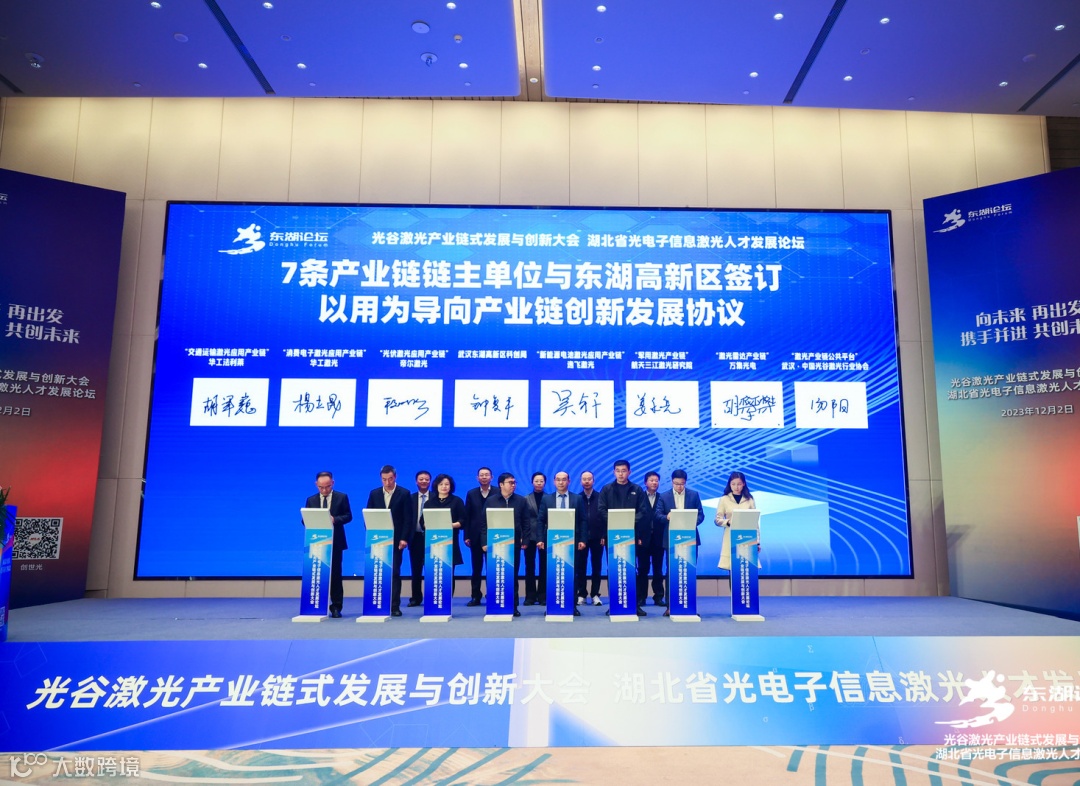 现场,交通运输、消费电子、光伏、新能源电池、激光雷达等7条激光应用细分产业链链主单位与东湖高新区签订以用为导向产业链创新发展协议。